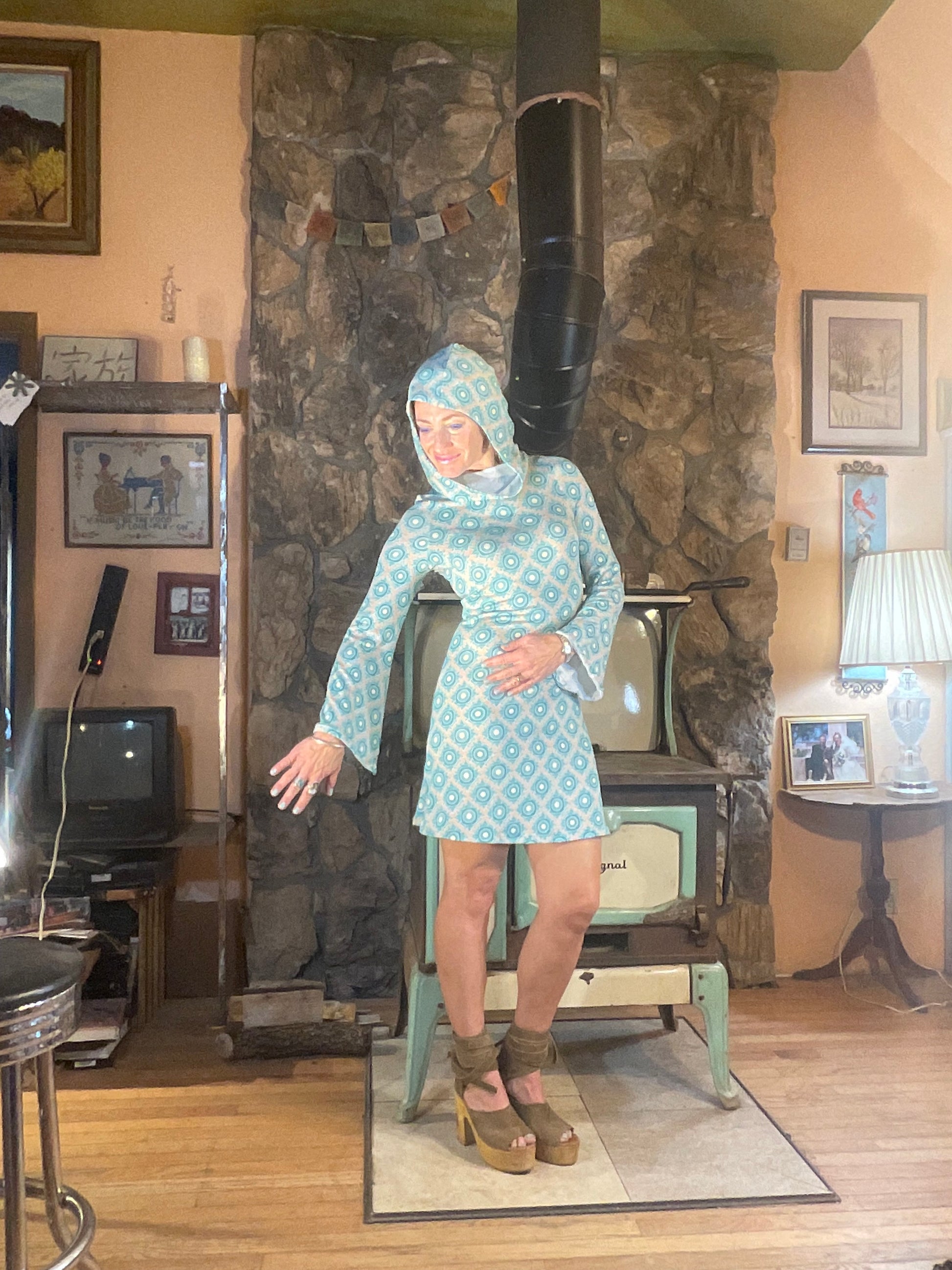 Introducing the Stevie Marie Tunic Dress in Sedona Sunset a handcrafted piece from Colorado that combines elegance with sustainability. Made from super-soft, upcycled designer fabric, this dress features bell sleeves and Ojo’s signature hood, offering a unique and versatile addition to your wardrobe. Pair it with boots and leggings for a cozy winter look, or with your favorite sandals for a breezy summer outfit. Available in sizes XS to XL, with only two pieces made per size, ensuring exclusivity and individuality.